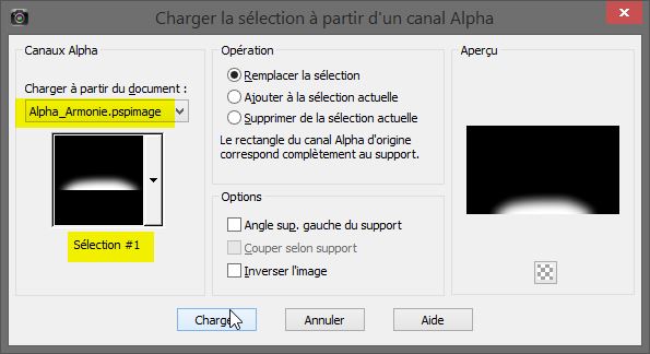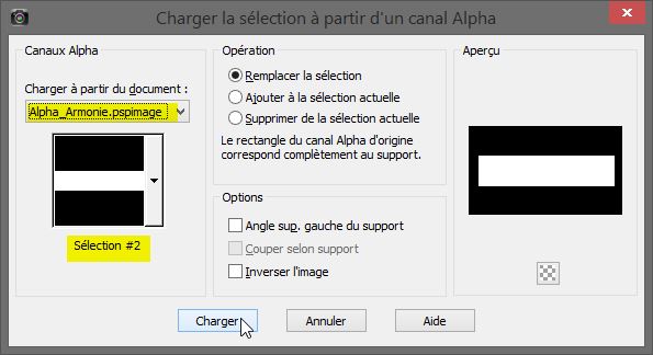 Sélection/charger à partir du canal alpha la sélection 2
