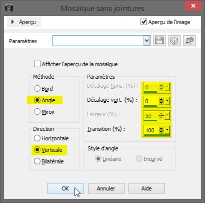 Remplir votre sélection avec la couleur arrière plan #ffffff blanc Désélectionner tout Effet/effet image/mosaïque sans jointures