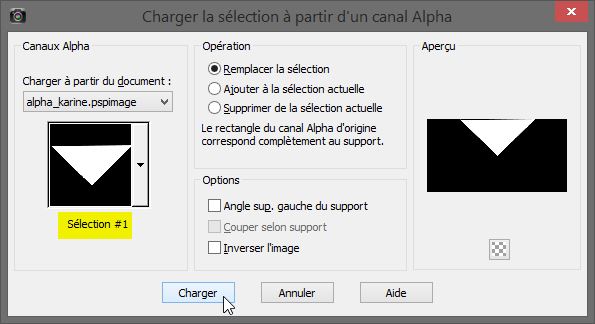 Sélection/charger à partir du canal alpha la sélection #1