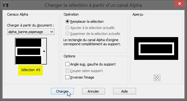 Sélection/charger à partir du canal alpha la sélection # 5