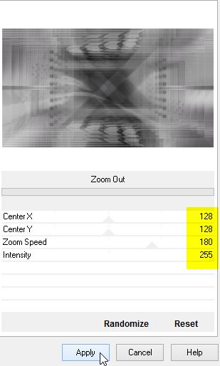 Baisser l’opacité de ce calque à 30 Réglage/netteté/netteté 11 Image/ajouter des bordures de 1 pixel couleur arrière pl #ffffff Édition/copier image/ajouter des bordures de 45 pixels de couleur av plan Sélectionner la bordure avec votre baguette magique Édition/coller dans la sélection Effet/modules externes/Unlimited/Factory Gallery A /Zoom Out