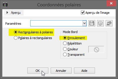 Baisser l’opacité du calque à 70 4 Positionnez vous sur votre copie Raster 1 L’effet coordination polaires Sélection/charger à partir du canal alpha la sélection 1