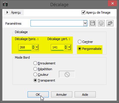 Édition/copier Retourner à nouveau votre tag Édition /coller comme nouveau calque sur le haut de pile Effet/effet image /décalage